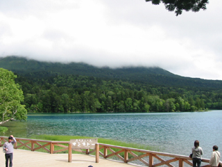 凹んだ気分のまま、阿寒湖の手前にあるペンケトーとパンケトー、二つの湖が見渡せるという双湖台へ行くが、やはり霧で何も見えない。通りがかった陸上自衛隊のみなさんを横目に、一路阿寒湖畔へ。知らなかったが、ここは阿寒湖温泉という一大観光地なのだった。本場?どさんこラーメンを食べて、まりもドラを買う。展望台には車が入れなかったので、次はオンネトーへ。ここは湖水の色が美しい湖。北海道の三大秘湖だというのもわかる気がする。ちなみにオンネトーとはアイヌ語で「老いた湖」という意味だそう。かなりの急勾配を登って展望台に行くが、流した汗の量に比べれば、眺望それほどでもなかったかも。