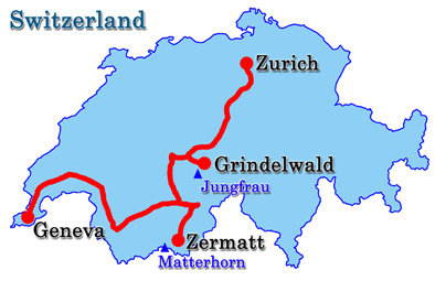 朝起きるとけっこう天気がいいので、もう一度ゴルナーグラートに行くことにする。まず朝食。レストランの窓からマッターホルンが見える。やはり山を見にいかなくては。チェックアウトして荷物をホテルに預け、GGBで登る。昨日はまったく見えなかったマッターホルンが眼前に迫る。スイスといえば、やはりこれだ!展望台に行き、眺望を堪能。電車で一駅ローテンボーデンまで下り、リッフェル湖に映る逆さマッターホルンなど見ながら、次の駅リッフェルベルクまでハイキング。 512MBのメモリーカードがいっぱいになるまで写真を撮ったが、写真を周り360度を3000m級の山々に囲まれるというのは、実際に体験してみなければわからないものだろう。最後にやっとこの地に棲む動物マーモットも見れた。 山を下りて、腹ごしらえし、荷物をピックアップして出発。駅を出たのは3時過ぎ。フィスプで乗り換え、ジュネーヴ(空港)行きの電車に、文字通り飛び乗る。今日の行動は予定外だったから時刻表も調べていなくて、けっこう冒険であった。 乗り換えてすぐ、シオンあたりからフランス語圏に突入。車内放送の最初の言語も、車掌の言葉も、駅の看板類もみな急にフランス語になる。さすが多言語国家スイス。公用語は、独仏伊ロマンシュ語の4語。みな学校で2ヶ国語は学ぶのだそうだ。それに加えてお店ではだいたい英語が通じる。日本も小学校から外国語を学習すべきだと思う。とりあえず英語か。 ジャズフェスティバルで有名なモントルーを通るときに、バイロンに詠われたシオン城を見る。通路を挟んで向かいの席に座っていたマダムが親切に教えてくれたのだ。 電車は2時間半ほどでジュネーブに到着。スイスフランはほとんど使い切ったので、ここでユーロに少し両替しておく。ホテルまでは徒歩5分。ベルボーイ付の、今回の旅行で一番贅沢なホテルブリストルである。まだ明るいとはいえ、もう8時前なので、一息ついて出かける。 140mも吹き上がっている湖の大噴水を見て、イタリアンレストランで晩御飯。宿に戻り、バタンキュー。今日はよく歩いたので。明日はスイスを出国しフランスへ。新幹線よりも速いTGVに乗る。