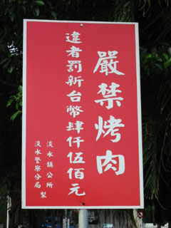 「焼肉厳禁!」の看板。けっこう高い罰金。